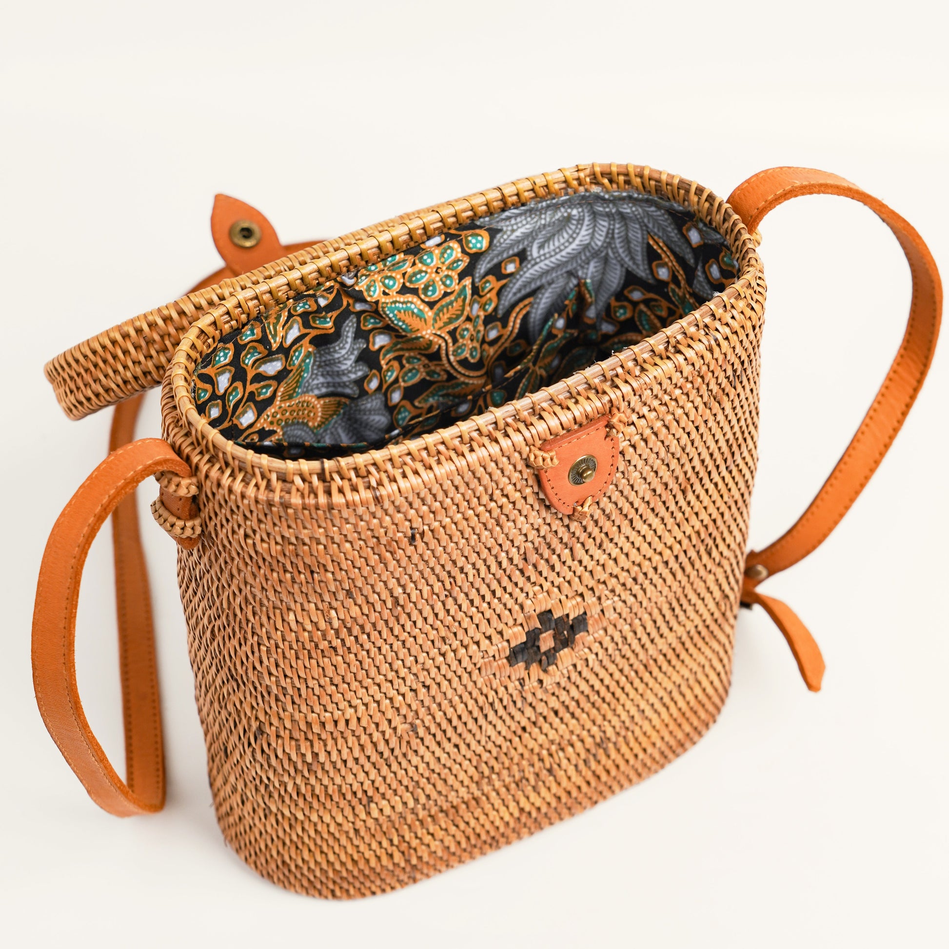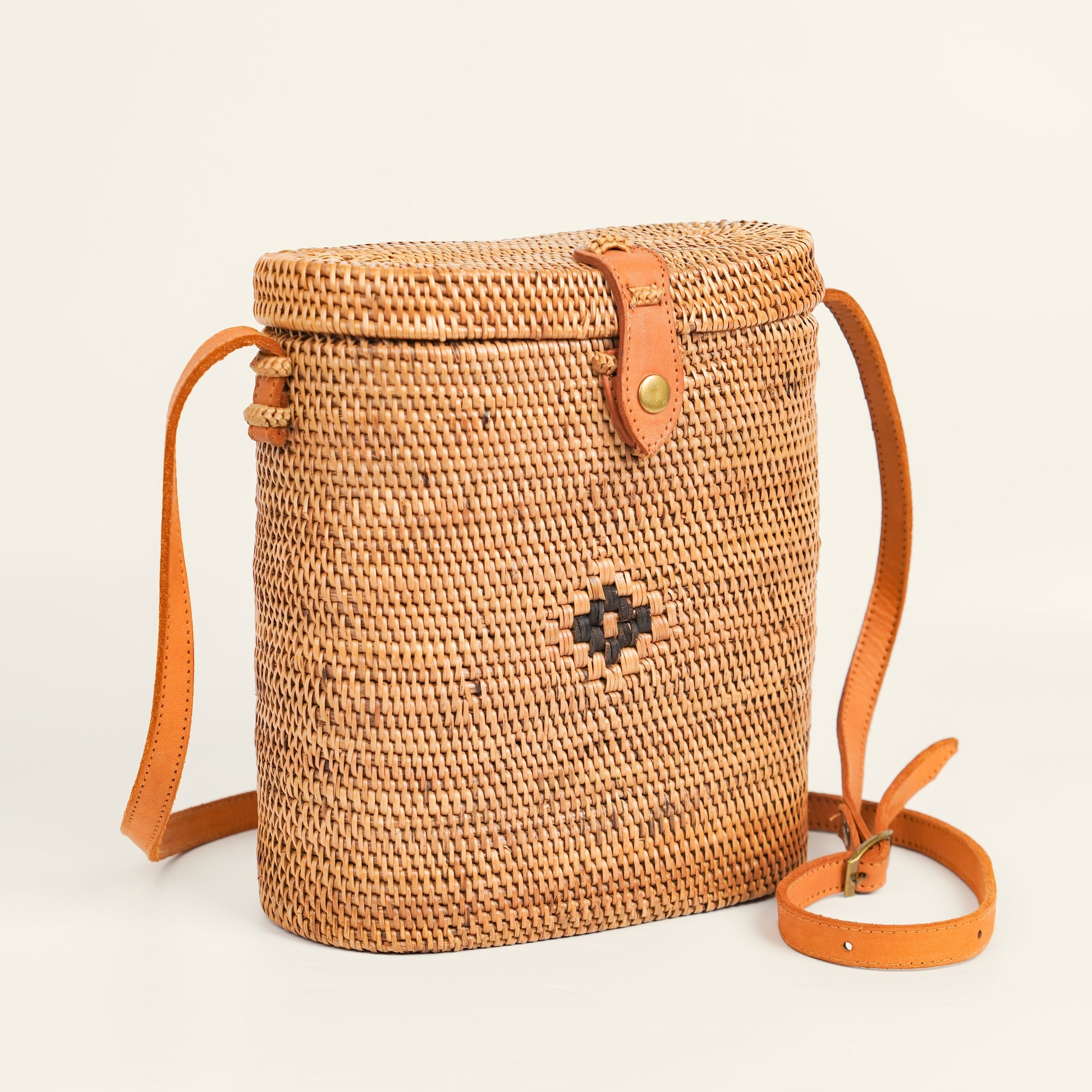 Traditionell inspirierte Rattan-Umhängetasche mit Clipverschluss – mit viel Liebe von Hand gefertigt, ideal für einen Hauch kulturellen Flairs!