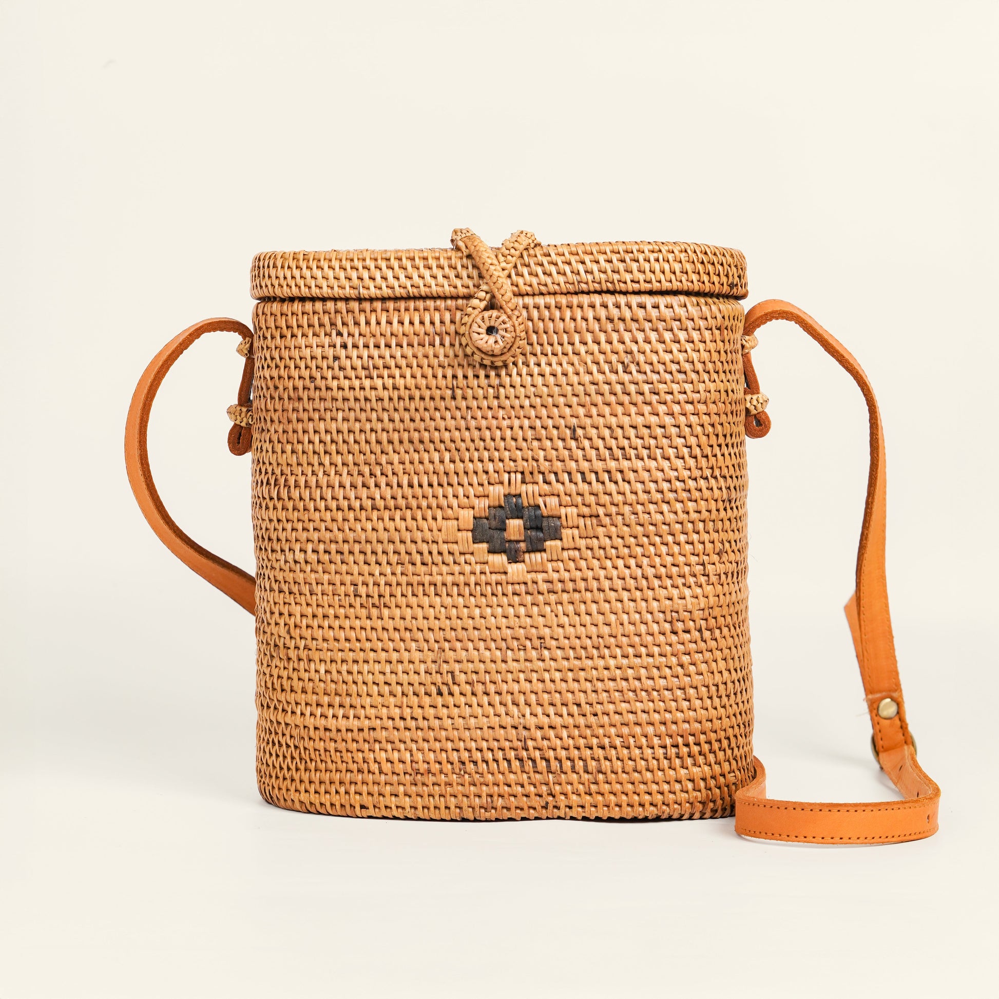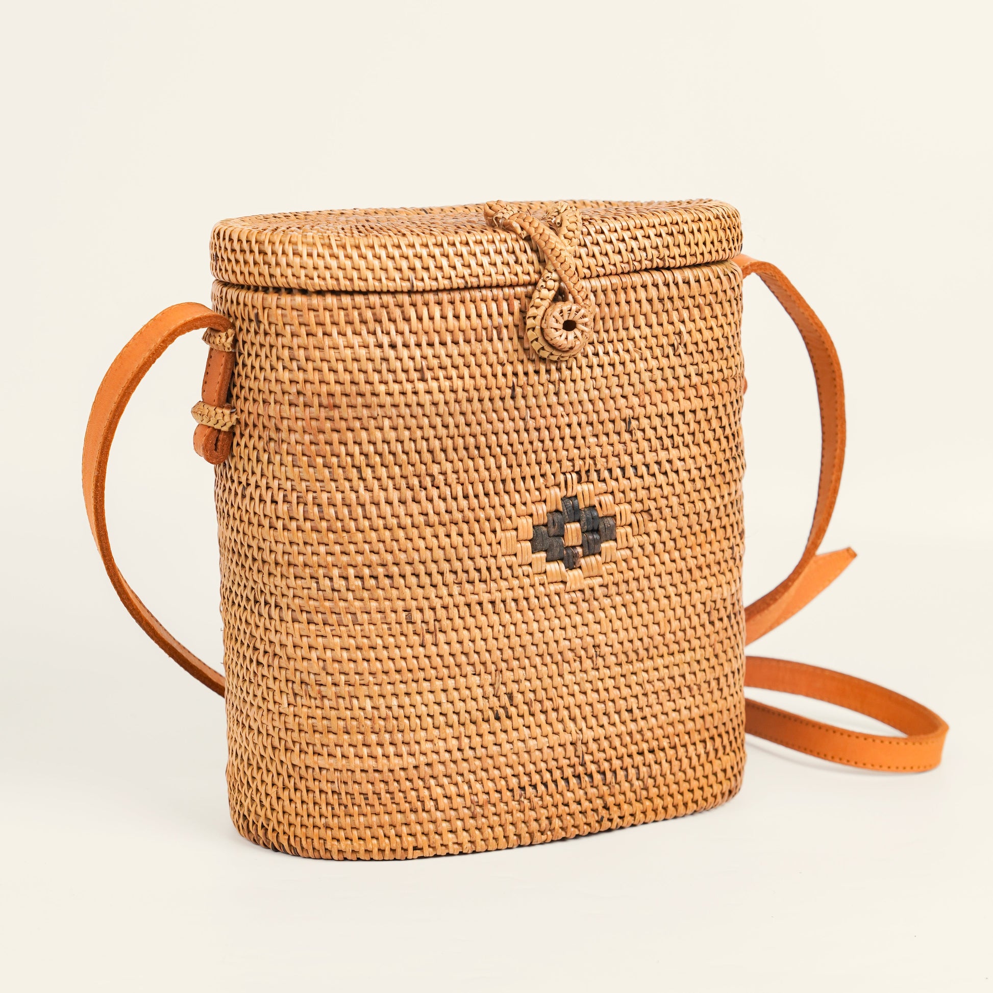 Traditionell inspirierte Rattan-Umhängetasche mit Bindeschluss – mit viel Liebe von Hand gefertigt, ideal für einen Hauch kulturellen Flairs!